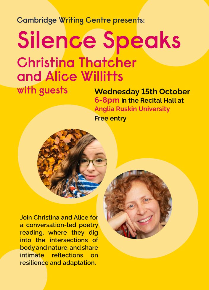 Join poets Christina Thatcher and Alice Willitts (plus special guests) for a conversation-led reading, where they dig into the intersections of body and nature. In these one-off events, Thatcher and Willitts share intimate reflections on resilience and adaptation— inviting us to reflect on what breaks us and what ultimately makes us stronger. A spirit of curiosity will enliven the event, with questions from the audience welcome.